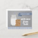 An adorable Modern Milk and Cookies Striped thank you postcard that's great for a baby shower. The colours are grey, blue, and white. It's a modern flair. The design has a stack of chocolate chip cookies with a bottle of milk.