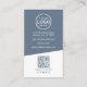 Dusty Blue Contemporary Photo QR Code Logo Vertical Business Card. This contemporary vertical business card is designed for corporate professionals, small business owners, freelancers, and consultants who value clean, modern design. The front features a soft dusty blue background with crisp white fonts, showcasing your photo, company logo, name, and title or business name in a polished and professional layout.