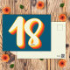 Blue Modern Retro Groovy Eighteen 18th Birthday Postcard