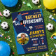 Blue Modern Soccer Kids Birthday Championship Invitation