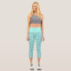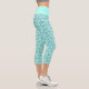 Bright turquoise blue capri leggings with a modern summer tropical flamingo animal birds pattern.