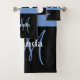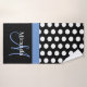 Blue Monogram Black White Polka Dot Bath Towel Set
