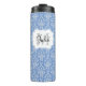 Blue Monogram Damask Pattern Thermal Tumbler