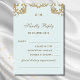 Elevate your wedding stationery with this personalised Baroque Wedding RSVP card, designed for a vintage, classic, and elegant touch. Featuring a beautifully ornate mocha tone frame detail set against a soft dusty blue background, this card perfectly captures the charm of a Rococo Wedding or Regency themed celebration. A stylish monogram of the couple's initials graces the top, adding a personal and timeless element. With a sophisticated blend of modern and script font, this RSVP card strikes a graceful balance between historical elegance and contemporary style—an exquisite choice for couples seeking a romantic, vintage aesthetic.