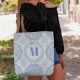 Blue Monogram Stylish Pattern Personalised Tote Bag