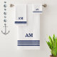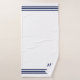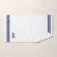 Blue three stripes and monogram on white. Elegant modern towel.