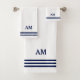 Blue Monogram & Three Stripes on White Bath Towel Set