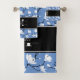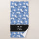 Blue Monogrammed Black and White Magnolia Flower Bath Towel Set