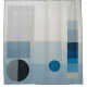 Blue and grey colour blocks, a small blue circle, and a larger, black and grey circle combine to make a lovely minimalist modern art shower curtain.
