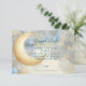 A dreamy watercolor design featuring a glowing crescent moon surrounded by hanging stars, fluffy clouds, and festive balloons in soft shades of blue and gold. Perfect for creating a magical and celestial-inspired baby shower atmosphere.