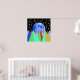 A full moon with stars and mountains