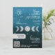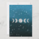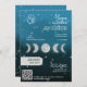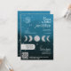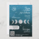 Modern navy blue watercolor gradient ombre with full moons and crescent stars, geometric shapes and yoga pose silhouette Yoga instructor studio teacher classes flyer for promo and price list. Add your, logo, social media , address and time schedule.