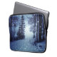 Blue Moonlit Magical Forest Winter Scene Laptop Sleeve