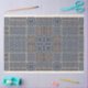 Moroccan tile design in colours of blue, grey blue, orange, yellow and turquoise. Multiple tiles in a mosaic of tiles with tan grout lines. 18 lb 20x30 decoupage tissue paper.