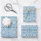 Blue Moroccan Mediterranean Tile Pattern Wrapping Paper Sheet