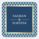Blue Moroccan Quatrefoil Pattern Wedding Square Sticker