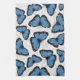 Seamless pattern design with blue morpho butterflies on hydrangea flowers linework background.