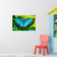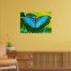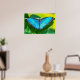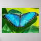 Butterfly Blue Morpho against a background of green foliage. A cute poster for you or as a gift.