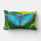 Butterfly Blue Morpho against a background of green foliage. A cute pillow for you or as a gift.