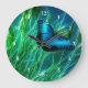Blue Morpho Butterfly on Green Grass Large Clock