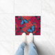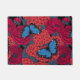 Seamless pattern with hand drawn blue morpho butterfly, hydrangea and peonies.