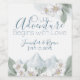 Our adventure begins with love, dusty blue mountain range with lovely white mountain laurel watercolor floral and hand scripts style text.