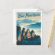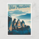 A captivating and nostalgic depiction of the Blue Mountains, a stunning region located just outside Sydney, Australia, known for its breathtaking vistas, dense eucalyptus forests, and dramatic cliffs. The design captures iconic landmarks like the Three Sisters rock formation and the lush valleys that characterise this beautiful area. Rendered in a vintage style, the artwork evokes a sense of tranquillity and adventure, inviting viewers to explore the serene landscapes, hiking trails, and the rich flora and fauna that make the Blue Mountains a unique natural wonder.