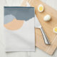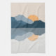 Abstract colourful illustration of sunrise with blue mountains reflected in the lake