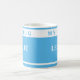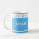 Blue mug with name in white text that you can customise. Colour of mug can be changed too