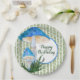 Blue Mushrooms on Aspen Birthday Paper Plate