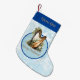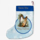 This Blue Musical Harp Christmas stocking will add a touch of beauty to your holiday decor. Featuring a dark blue top with a customisable name and you can customise the holiday too. The background is light blue with delicate winter white snowflakes displaying a beautiful harp that is perfect for a unique and festive look!