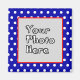 Replace the centre placeholder image on this blue and white polka dot photo frame magnet with your own digitally uploaded photo. The design will work on square or round magnets but the frame cutout will remain square.