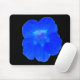 This mousepad features a photograph of a Nasturtium flower. The photo has been artificially coloured resulting in a dark blue flower full of different tones that make it look both moody and magnificent. The background is black.