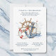 This classic maritime design is perfect for ocean lovers! Featuring a wooden ship wheel, a blue anchor, a life ring, and a sailboat over soft blue water, it's set against a clean white background with navy and red accents. Ideal for any seaside celebration or harbor-side party, it captures the adventurous spirit of the open sea with timeless illustrations.