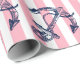 Blue Nautical Boat Anchor White And Pink Stripes Wrapping Paper