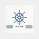Celebrate on a yacht with this paper napkin design with a royal blue boat rudder —a custom yacht name with blue stripes.