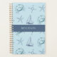 A planner with various nautical and ocean themed illustrations in a soothing blue colour scheme. Add a name or text using the "Personalize this design" button.