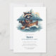 Blue Nautical Cute Fishing Racoon Birthday Party Invitation