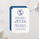 Elegant blue nautical floral anchor illustration over white customisable background, birthday party invitation template with reversed colours on opposite side