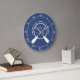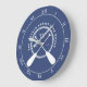 Blue nautically themed wall clock for the lake house with a monogram of paddles and a rope. Add your initial, family name, and year established. The wall clock as roman numerals in white.