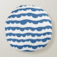 Blue Nautical Scallop Edge Sketch Pattern Round Cushion