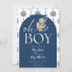 Blue Nautical Teddy Bear Baby Shower Invitation, The back includes an area for a QR code for RSVP or even the mummy's registry.