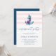 Celebrate your love with this nautical engagement party invitation, featuring an anchor and flowers on a pink and white stripes background. Reverse side of the invitation is in dark navy blue colour. Fully customisable text makes it perfect for beach or coastal-themed events.