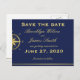 Blue nautical wedding Save the date postcards with gold compass and customisable text