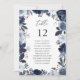 Seat your guests easily and in style with your Blue & Navy Floral Table Number Seating Charts. It's 2 things in one- a table number and seating chart together. Made with hand painted, navy blue and dusty blue watercolor florals (flowers) and red berries with calligraphy. This style is great for blue weddings, winter weddings, fall weddings, rustic weddings, and beach weddings.