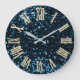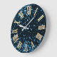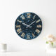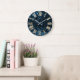 Blue Navy Glitter Teal SilverMetallic Roman Numers Large Clock