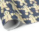 Blue Navy Stars Gold Christmas Ginger Bread Guy Wrapping Paper
