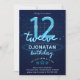 Blue Neon 12th Birthday Party Let's Glow Crazy Invitation