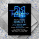 Blue Neon 21st Birthday Invitation