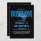 Blue Neon Bowling Party Birthday Invitation